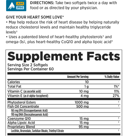 Phytomega provides the proven benefits of Phytosterols with the antioxidant power of CoQ10 and ALA to help fight free radicals. Phytomega also contains Omega-3s which support the transport of phytosterols in the gut. Combined, these powerful actives help to lower bad cholesterol and reduce the risk of heart disease